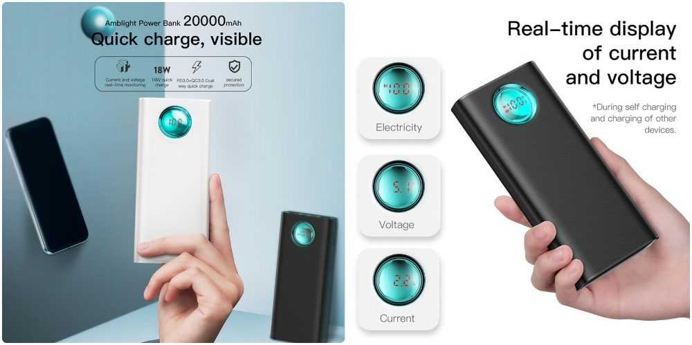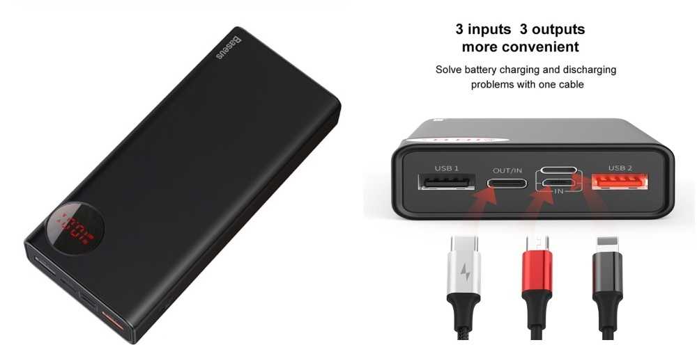 Baseus — достаточно известное имя в индустрии аксессуаров для телефонов. В линейке продукции есть этот внешний аккумулятор емкостью 20000 мАч, которая выделяется поддержкой быстрой зарядки Quick Charge 3,0. Батарея имеет 3 выходных порта для зарядки до трех устройств. Это два стандартных USB порта и один USB Tupe-C для зарядки новых телефонов.