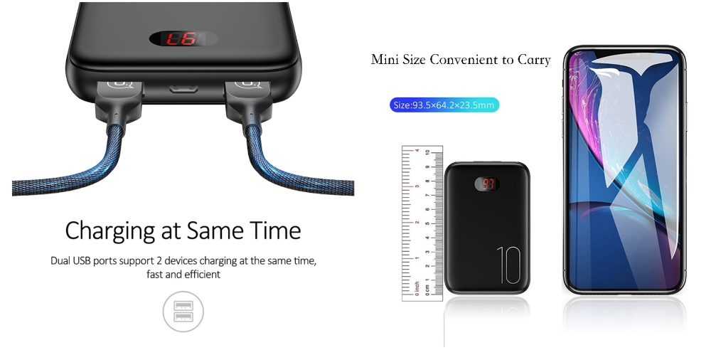 Как правило, чем выше емкость аккумулятора, тем больше и его габариты. Если вы планируете регулярно носить павербанк на учебу или работу, то лучше выбирать устройства небольших размеров, т.к. их удобней переносить в сумке, да и на столе они много места не займут.