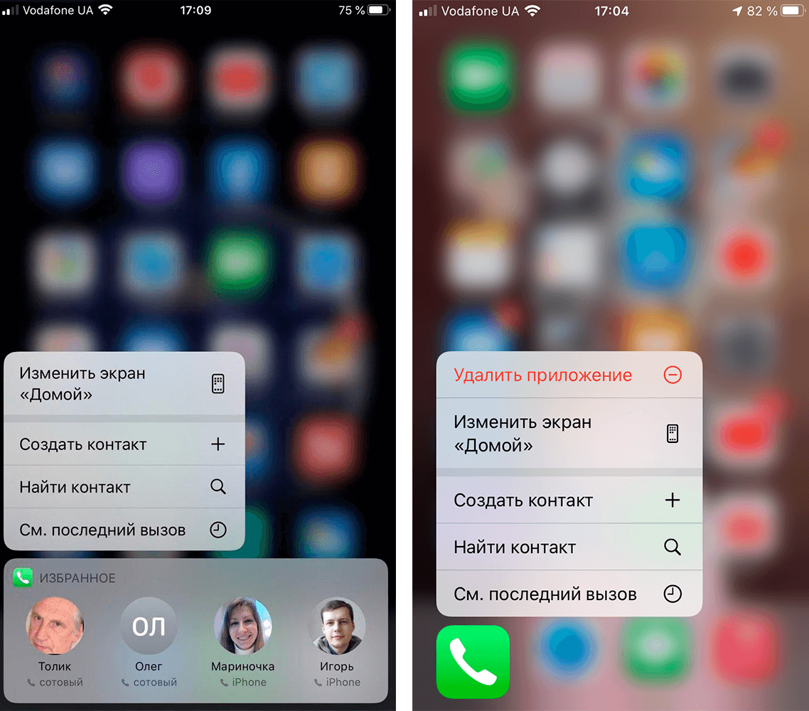 В iOS 13 была возможность при помощи жеста 3D Touch или Haptic Touch на иконках приложений вызывать контекстное меню, в котором для поддерживаемых приложений, помимо команд, были еще и виджеты. Мне было очень удобно пользоваться так виджетом «Избранное» для приложения «Телефон» и для открытия диалога с конкретным пользователем в Telegram, WhatsApp и Viber.