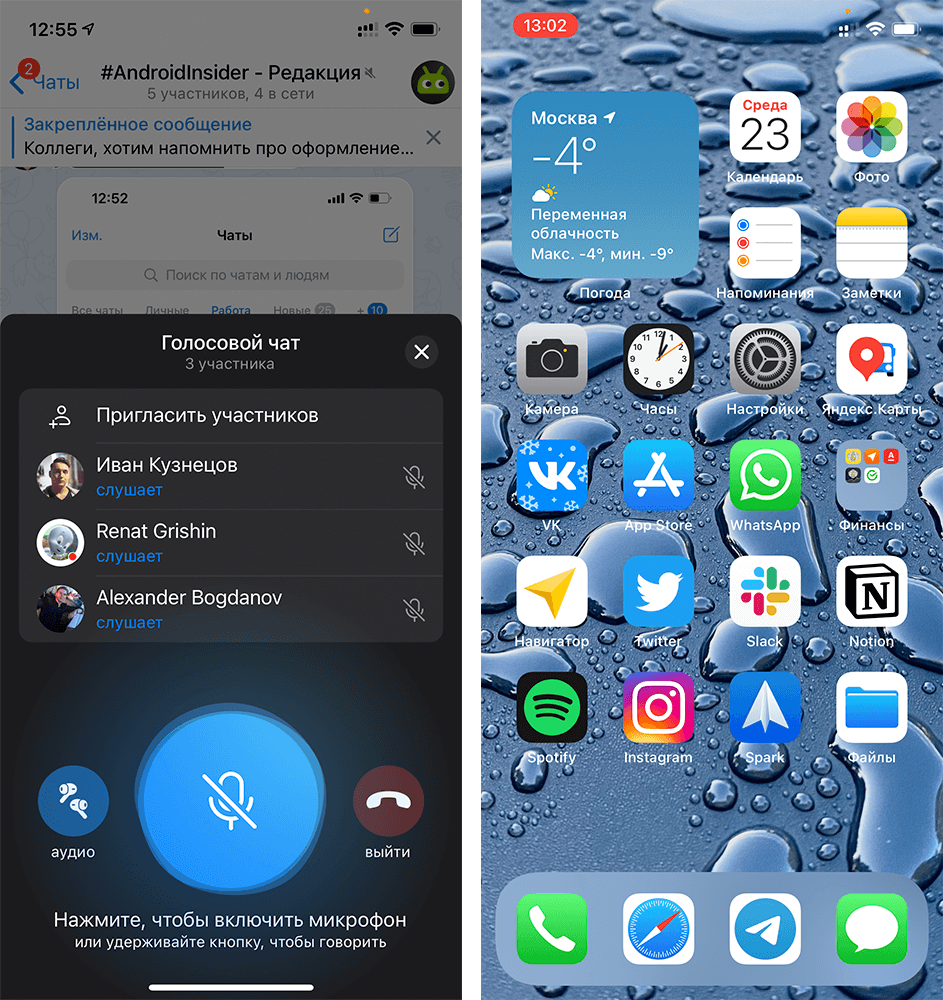 Будьте внимательны — голосовой чат в группе работает в фоновом режиме, даже если iPhone заблокирован. Если не хотите, чтобы аккумулятор телефона быстро разряжался, лучше выходить из голосовых чатов, когда вы их не используете.