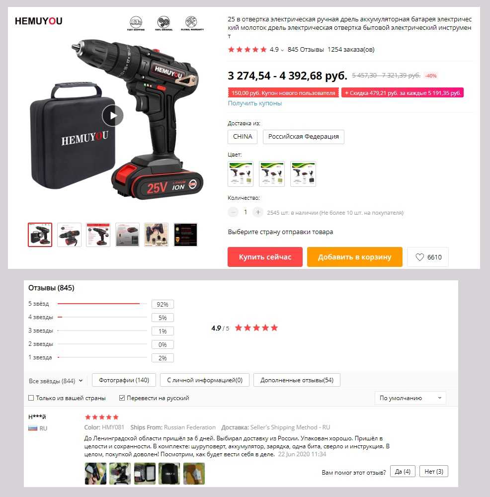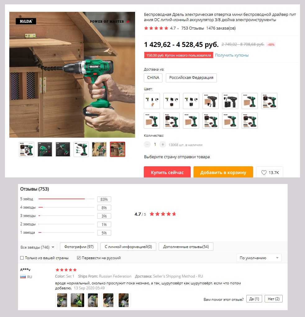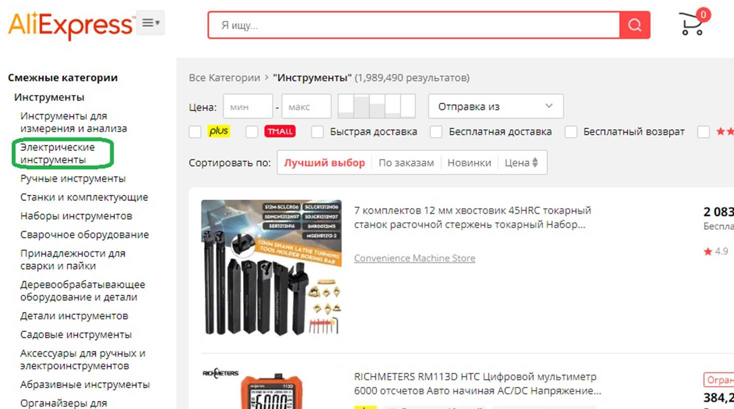 Поиск шуруповерта в онлайн магазине Алиэкспресс обязательно включает в себя выполнение следующих шагов: