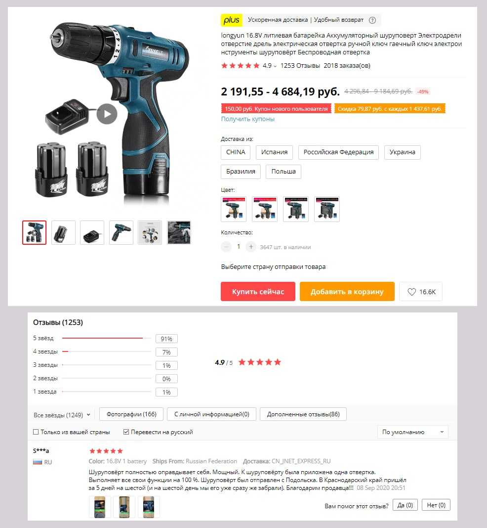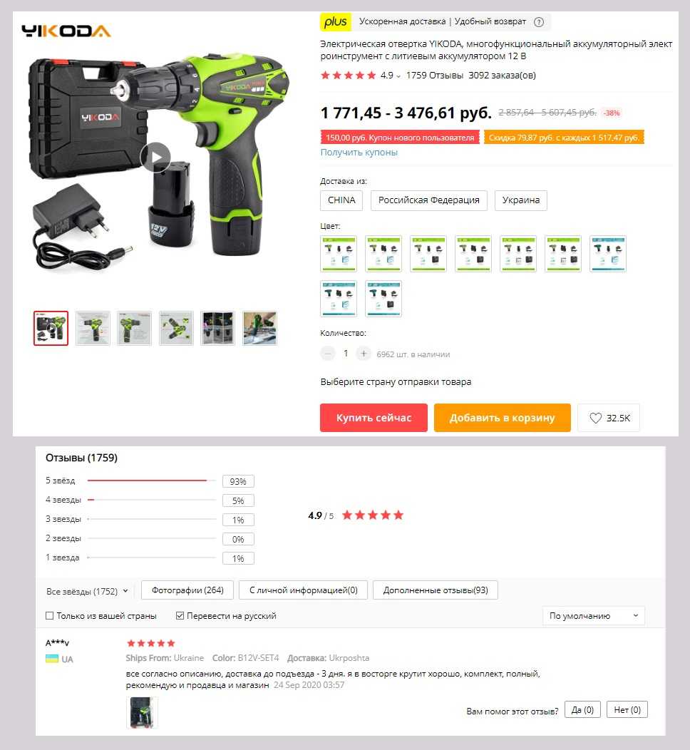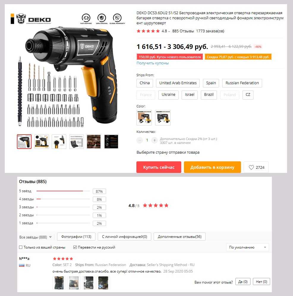 Поиск шуруповерта в онлайн магазине Алиэкспресс обязательно включает в себя выполнение следующих шагов: